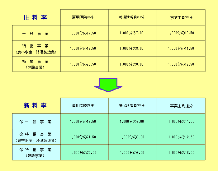 今回の改正に伴い今まで使用しておりました雇用保険料率表が廃止となりました。